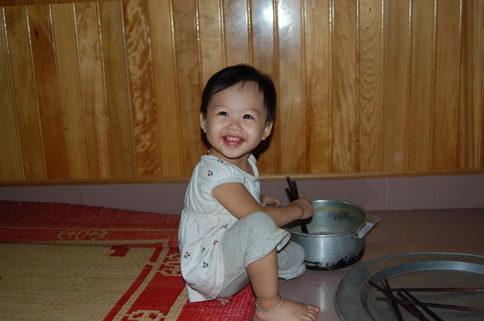 Bây giờ bé được gần 5 tuổi rồi. Bé 2 tuổi đã cầm đũa một cách thành thạo. Tấm này bé bị chụp trộm trong lúc vét nồi mỳ tôm.