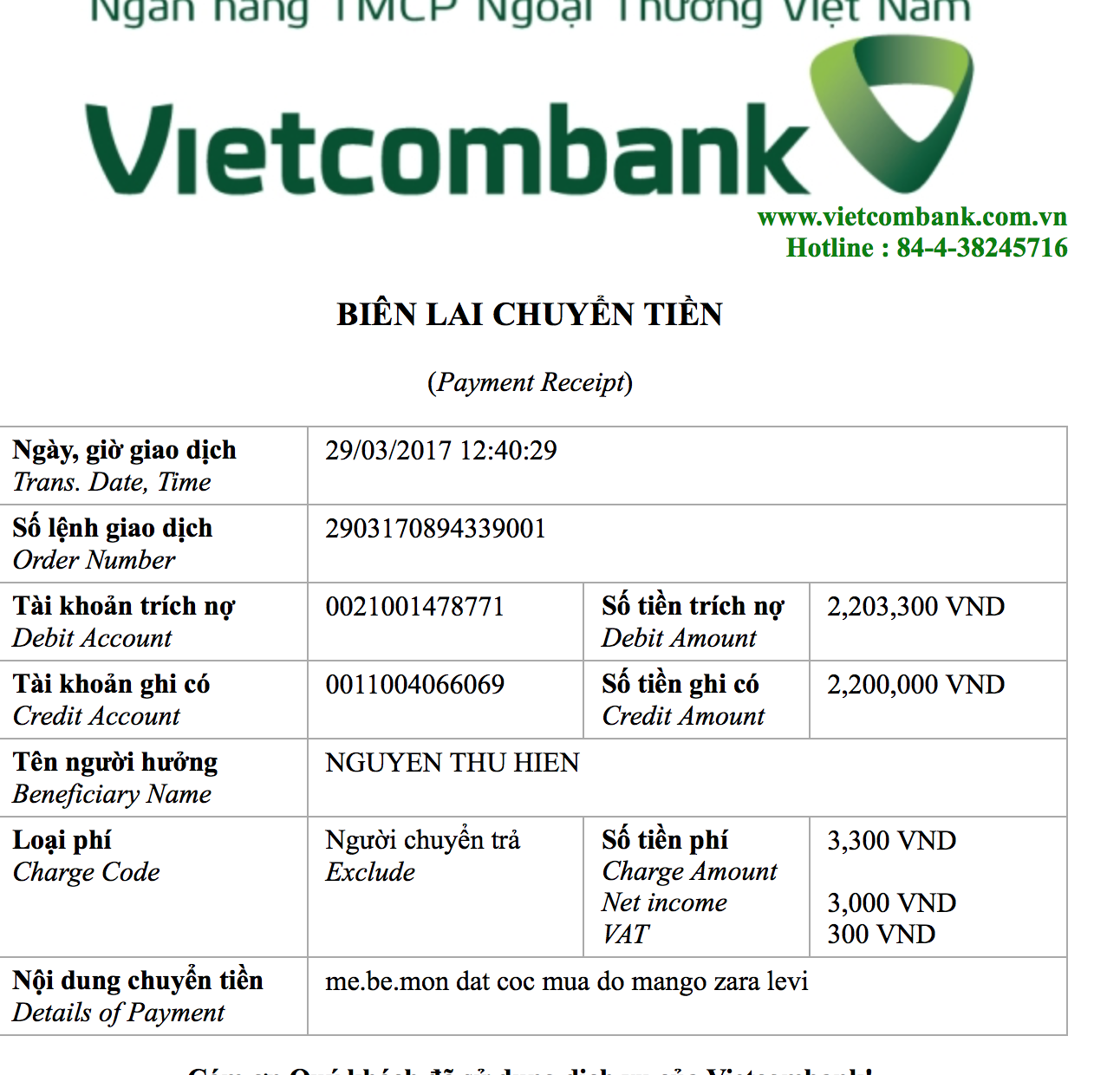 em vừa ck 2200k vào tk vcb, chị check và mua giúp em. thông tin để nhận file share em ib ạ