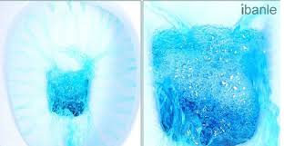 - Mở nắp bồn cầu chứa nước, xả hết nước trong bồn, thả hộp tẩy vào góc bồn nước ở vị trí xa van xả. Sau 10 phút, nước trong bồn sẽ chuyển sang màu xanh nước biển.