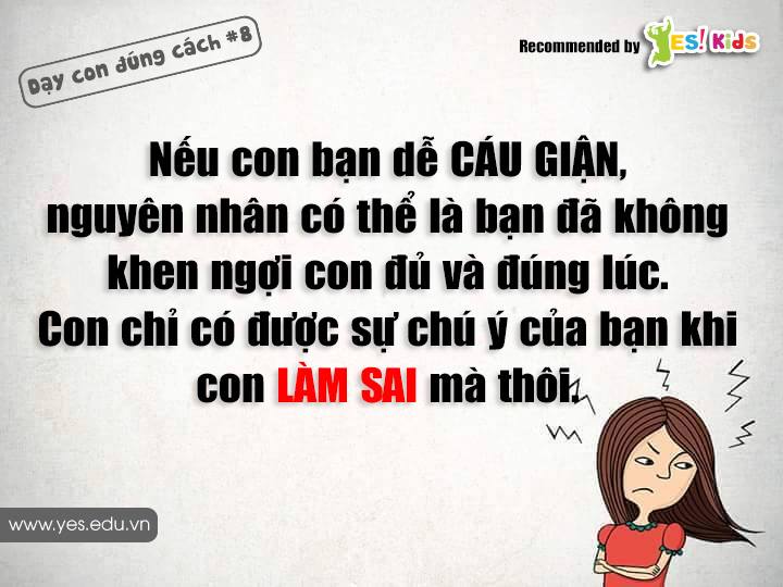 Trẻ con muốn thu hút sự chú ý của cha mẹ. Đôi khi chúng ta quá bận rộn, chỉ khi con mắc lỗi mới nhắc nhở. Một cách dễ hiểu, trẻ sẽ làm sai để được quan tâm. Hãy tạo thói quen khen con khi chúng làm điều tốt, trẻ sẽ phát huy điều đó, như thế không phải sẽ tốt hơn sao?