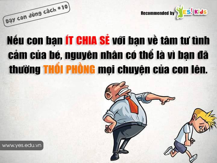 Biểu đồ sau đây biểu thị mức độ đòi hỏi cao đối với con cái và tinh thần trách nhiệm, sự quan tâm giúp đỡ của cha mẹ. Trục tung thể hiện mức độ đòi hỏi đối với con, còn trục hoành biểu hiện mức độ quan tâm, giúp đỡ và tình cảm của cha mẹ. Còn sau đây là những sai lầm thường gặp mà cha mẹ chúng ta thường gặp phải và hậu quả của nó: 1. Nếu con bạn lười nhác là có nghĩa với việc bạn phản ứng thái quá với những sai lầm trong quá khứ. 2. Nếu con bạn có lòng tự trọng thấp là vì bạn đã khuyên bảo nhiều hơn khích lệ chúng 3. Nếu con bạn không biết đứng lên vì lợi ích của mình thì vì khi chúng còn nhỏ bạn thường kỷ luật chúng trước mặt người khác 4. Nếu bạn mua mọi thứ cho con rồi mà chúng vẫn lấy đồ của người khác là vì bạn không để chúng được chọn lựa 5. Nếu con bạn quá nhút nhát là vì bạn giúp chúng quá nhanh. Đừng tìm cách gạt bỏ mọi trở ngại trên đường của chúng 6. Nếu con bạn hay đố kỵ là vì bạn thường xuyên so sánh con mình với người khác 7. Nếu con bạn dễ bị tức giận là vì bạn đã không khen ngợi con đủ, chúng chỉ được quan tâm khi làm sai gì đó. 8. Nếu con bạn không tôn trọng cảm xúc của người khác thì có thể là bạn đã luôn ra lệnh cho con mà không cho con thấy tầm quan trọng của cảm xúc của nó 9. Nếu con bạn hay giấu giếm là vì bạn thường thổi phồng mọi thứ lên to quá 10. Nếu con bạn cư xử thô lỗ là vì chúng học được từ cha mẹ hoặc những người chúng sống cùng (Sưu tầm)