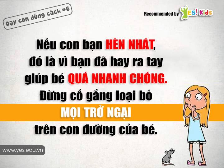 Cô đọng, xúc tích, phản ánh đúng hiện tượng và bản chất... Hay và đúng quá! Cám ơn bác Kiên. Em thấy đúng nhất câu nói: "Nếu con bạn quá nhút nhát là vì bạn giúp chúng quá nhanh. Đừng tìm cách gạt bỏ mọi trở ngại trên đường của chúng".